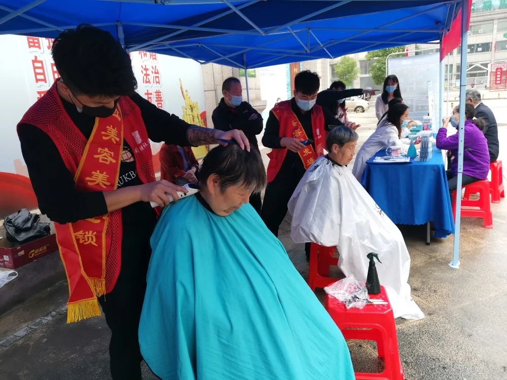 在便民服务区,爱心商家艾匠美容美发店的理发师们刚一摆好理发工具,老人们就在一旁有序排起了长队,理发师们耐心、认真细致的替一个又一个老人理发,现场井然有序,气氛融洽;免费爱心义剪活动既给辖区农民工带来了方便实惠,也传递了社区对辖区老人们关心与祝福。