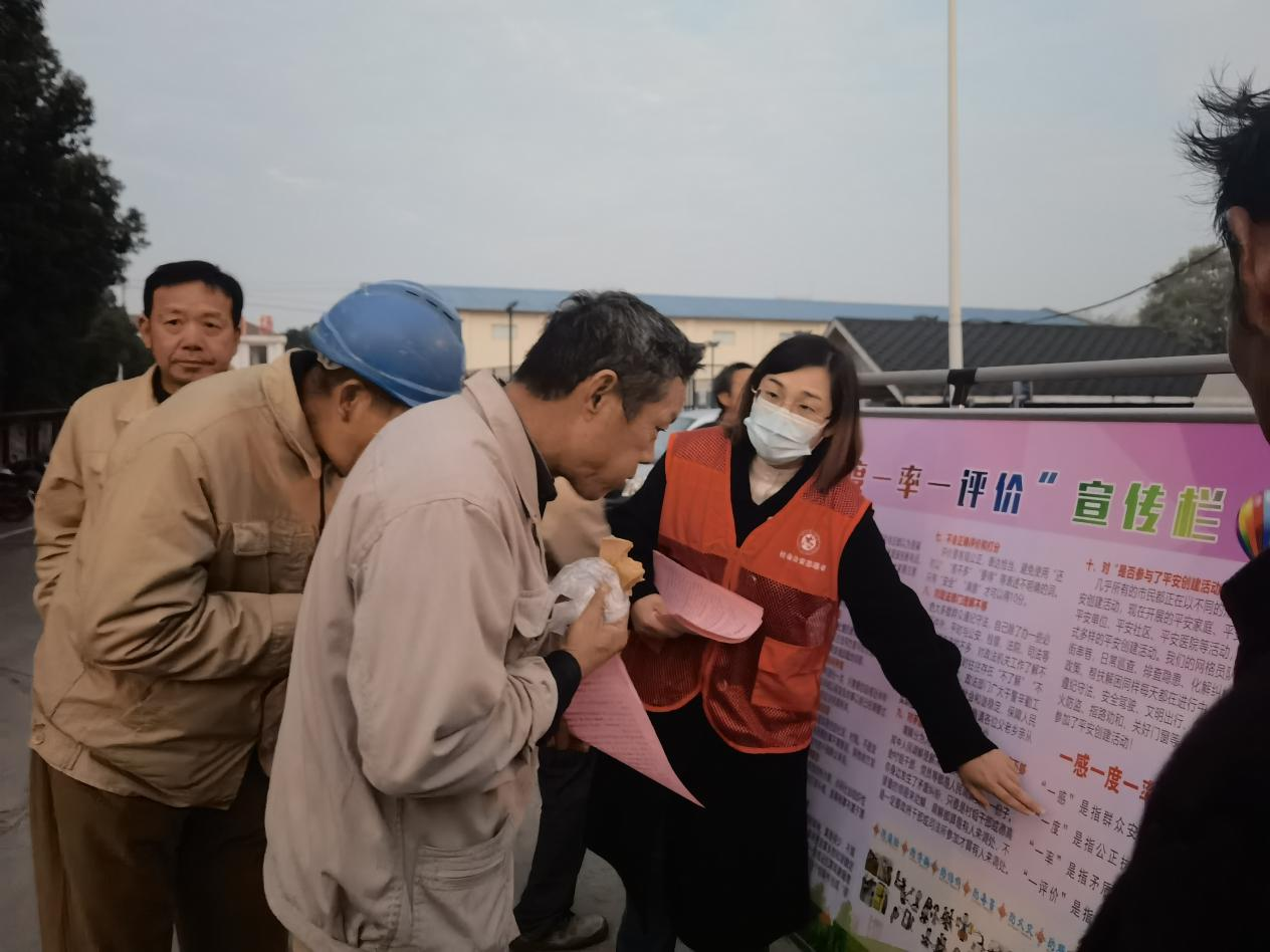 10月26日早上6点钟,泽林镇人才市场内人头攒动。市场内竖立着两个大型宣传牌,“全省‘一感一度一率一评价’调查行动开始了,如果您接到027-12340的调查电话,请不要怀疑,这是您为“平安泽林”点赞的好机会,请您一定要积极配合,文明接听回答。”“师傅,您安装国家反诈中心app了吗?大家挣得都是辛苦钱,万一被骗钱就全打水漂了!” 几名身穿红马甲的社区工作人员和身穿警服的公安干警站在宣传牌前正耐心细致地向农民工兄弟们宣传。