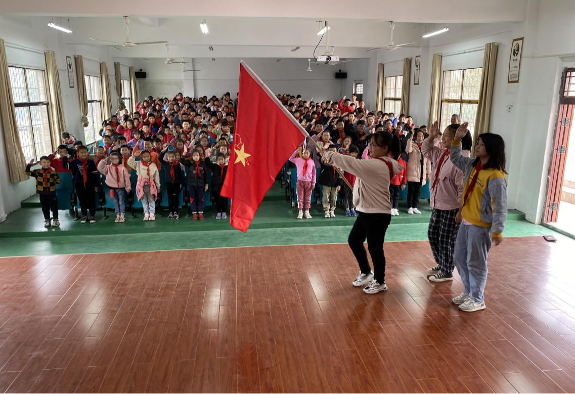 最后在大队辅导员的带领下,全体少先队员举起右手,握成拳头,放于耳侧,庄严呼号。并随着队旗的缓缓退出,本次活动圆满结束。