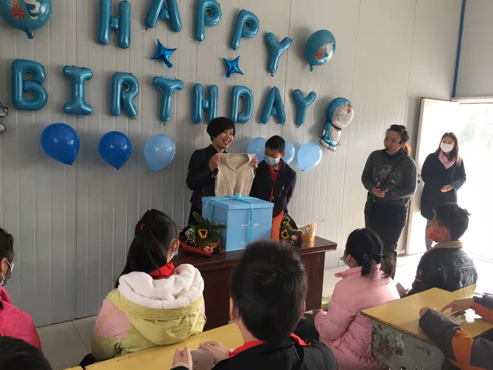 活动的第一个环节就是全班同学一起为王小宇同学唱生日歌,在生日歌中,他感动的眼泛泪花,随后紧闭上眼睛,许下了三个愿望。