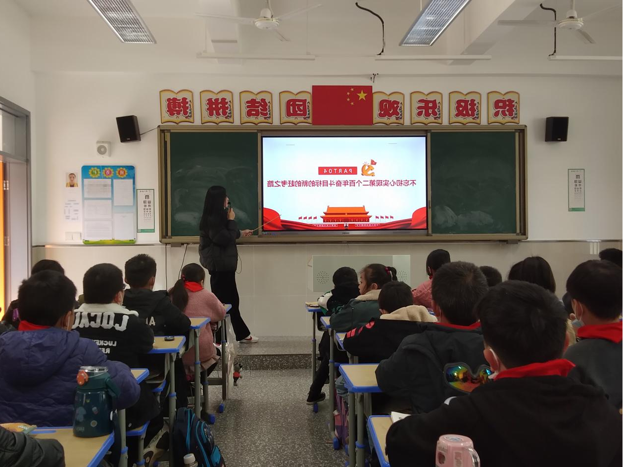 下午,各班在班主任的带领下,以班级为单位开展“十九届六中全会精神”主题班队会活动,把爱国爱党教育真正做到从娃娃抓起,引领孩子们担负起实现中华民族伟大复兴的光荣使命而不断前行。