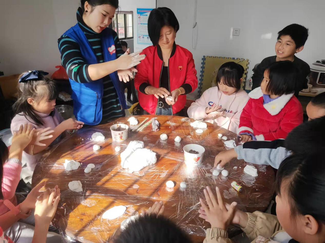 活动在破冰小游戏结束后正式开始,青年志愿者、社工用专门制作的ppt为孩子们介绍二十四节气和“小雪”的由来,并叮嘱小朋友们做好保暖防寒,多锻炼身体。接着,青年志愿者、社工带孩子们观看了党史动画视频,让孩子们了解党的历史和革命先辈的英勇事迹。随后,手工制作汤圆环节开始了。在青年志愿者、社工的指导下,小朋友们亲手包着汤圆,很快,一个个造型可爱的汤圆就做好了。孩子们用手托着自己包的汤圆,小心翼翼地向小伙伴们展示着,脸上堆满了得意的笑容。活动最后,孩子们品尝着自己亲手做的美食,一个个大呼“真好吃,我还要,我也要”。