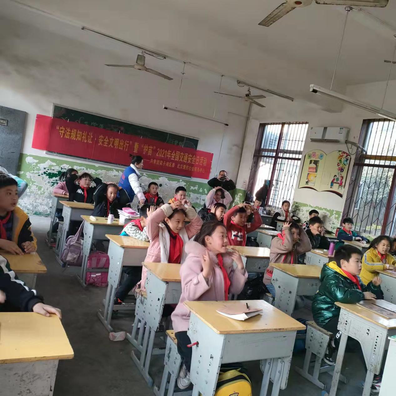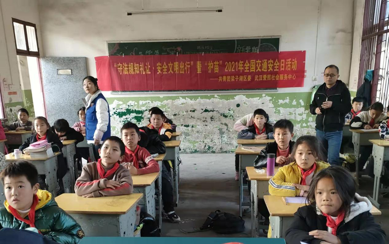 每年的12月2日是全国交通安全日,为了增强儿童交通安全意识,提高儿童自我防范能力,预防和减少涉及儿童的交通事故。12月2日,共青团梁子湖区委、武汉爱熙社会服务中心、太和镇子坛小学联合开展“守法规知礼让.安全文明出行”全国交通日的主题活动。