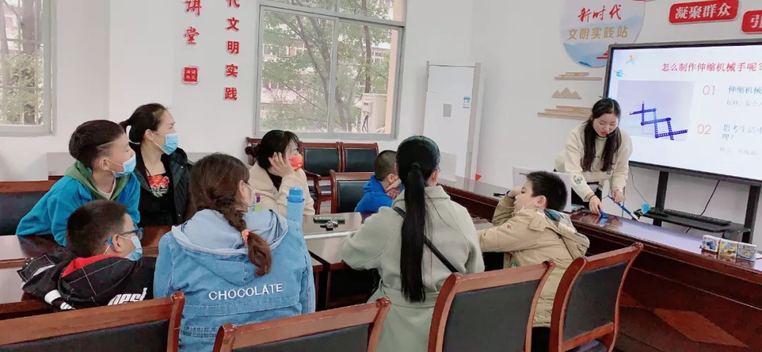 为丰富青年精神文化生活,搭建交流平台,服务青年成长发展需求,2021年11月20日下午,澜湖社区联合共青团鄂州市委、凤凰街办、鄂州市青少年事务服务中心、鄂州市青少年科技教育协会开展了澜湖社区11月亲子制作机械手活动。