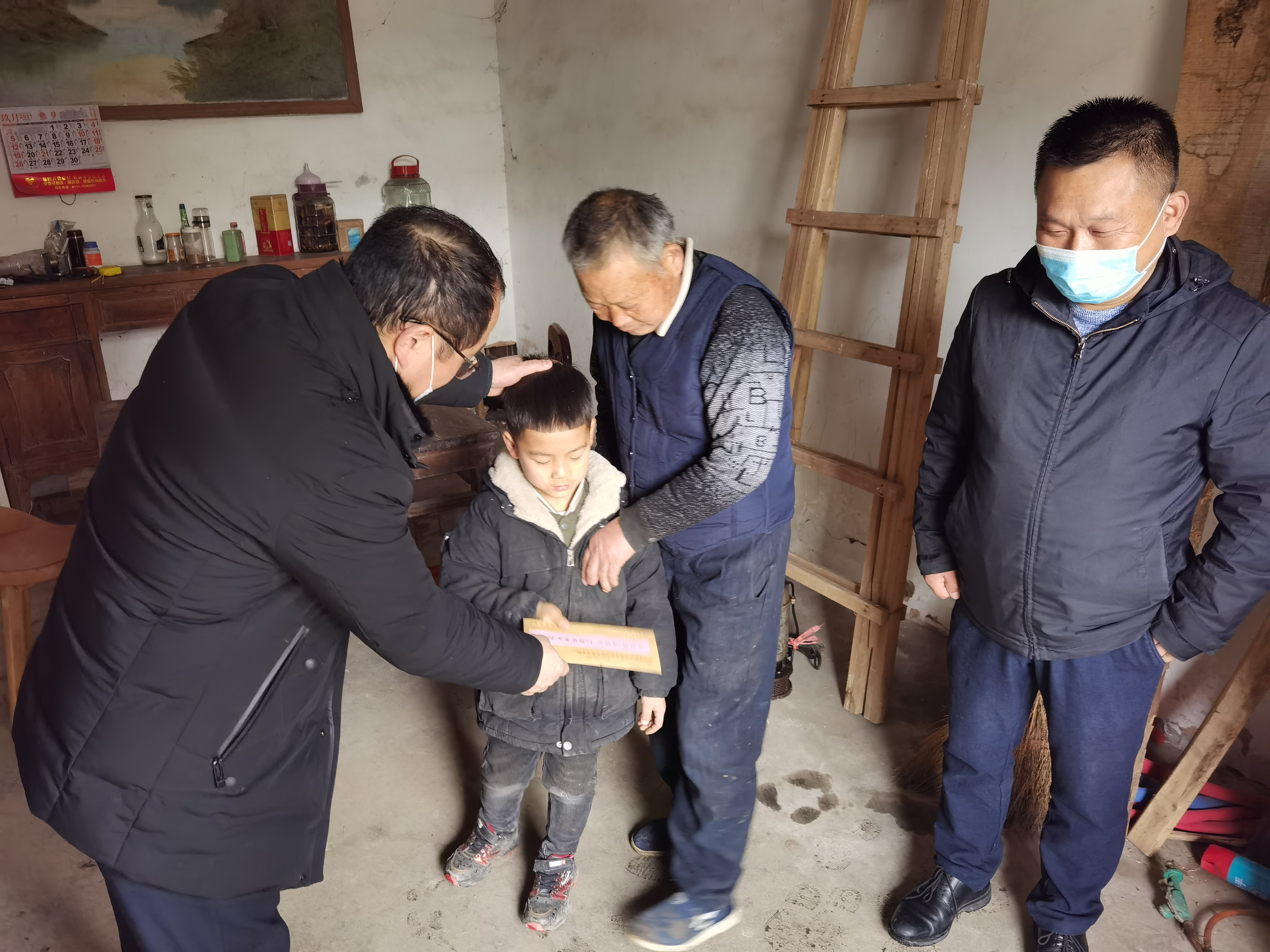 花小平与孩子及家长亲切交谈,了解了孩子的学习生活情况和面临的实际困难,聆听了孩子的新年愿望并向他送上了春节慰问,鼓励孩子要坚定信心、自强不息,勇敢面对困难、战胜困难,叮嘱孩子要保持积极乐观的生活心态,努力成为对社会有用的人才。走访慰问活动温暖了贫困留守儿童及其家长的心,严宇昊家长表示感谢党委和政府对他们的牵挂、关心和帮助,严宇昊也表示要好好学习做好学生、要让自己爷爷高兴。