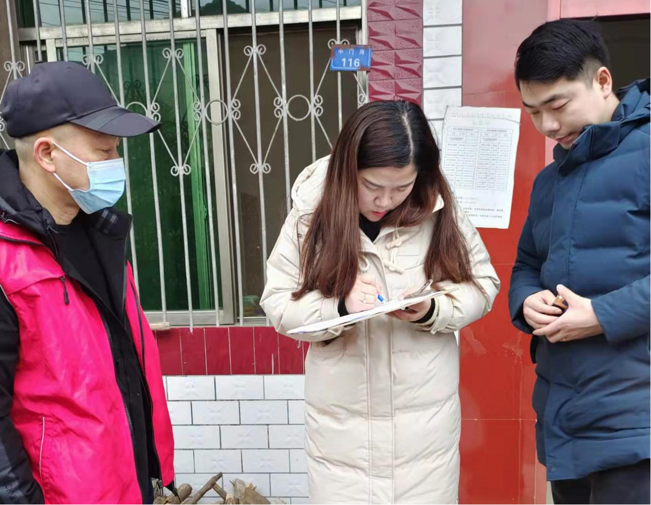 1月28日,北风呼啸,大雪纷飞,疫情志愿者身穿红马甲,穿梭在各村(居)群众家中,开展防控疫情知识宣传、发放防护宣传资料,协助村里开展人员登记排查、走访记录、张贴宣传告示、悬挂宣传标语等工作。他们没有任何怨言,默默用行动展现青春的光彩。“当听到村里招募疫情志愿者的消息时,我和妹妹第一时间报名,作为青年大学生参与防疫工作责无旁贷,何况我们两个都有防疫的工作经验”,子坛村青年志愿者胡斯文表示。
