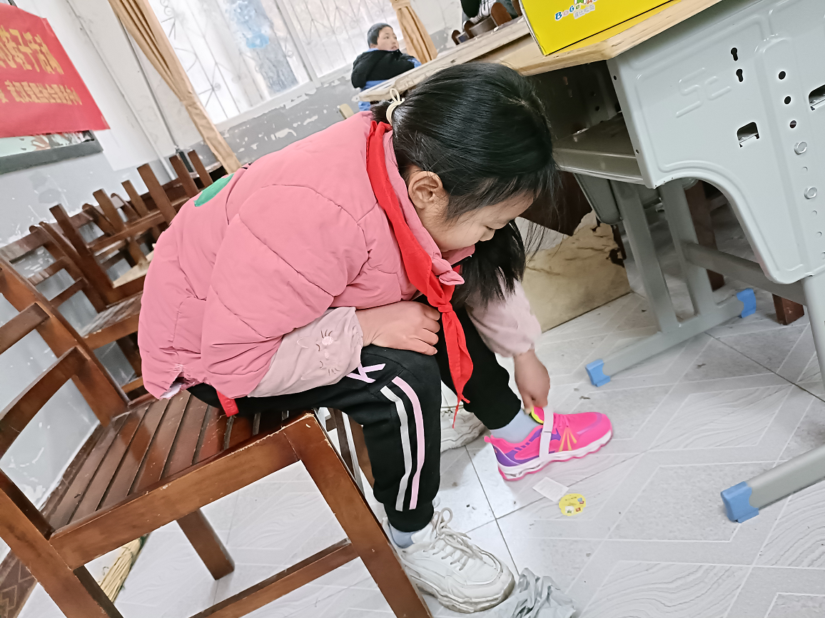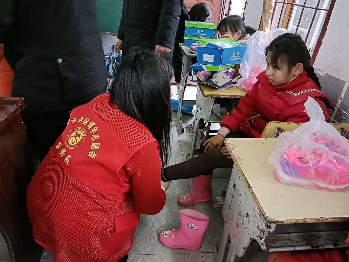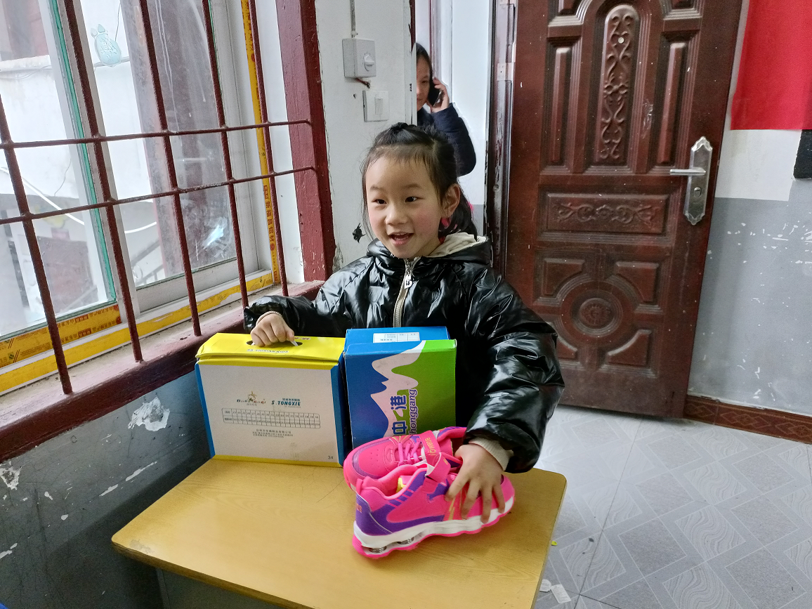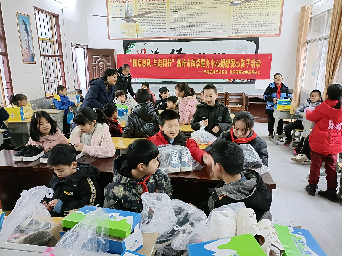 在活动现场,青年志愿者和学校老师根据孩子们的尺码将温岭市百人助学服务中心捐助的精美童鞋送到孩子们手中。穿着崭新、温暖的鞋子,孩子们脸上洋溢着灿烂的笑容。细心的志愿者发现一名二年级的小同学把新鞋子放回了盒子,仍旧穿上旧鞋子。志愿者问起原因,这位同学开心地说:“非常感谢姐姐为我送来的新鞋子,我现在的鞋子还能穿,等旧鞋子穿坏了我再穿新鞋子!”