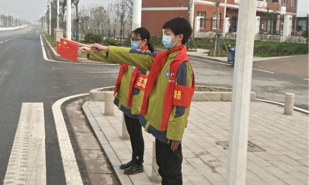 3月1日,映山中学组织七年级学生志愿者在学校门口道路实施文明交通劝导志愿服务活动,志愿者们身穿红色志愿服,手拿红旗,开展文明礼让、遵章守纪宣传教育,着力劝导行人、机动车、非机动车乱穿马路、乱闯红灯、乱停放等交通陋习。