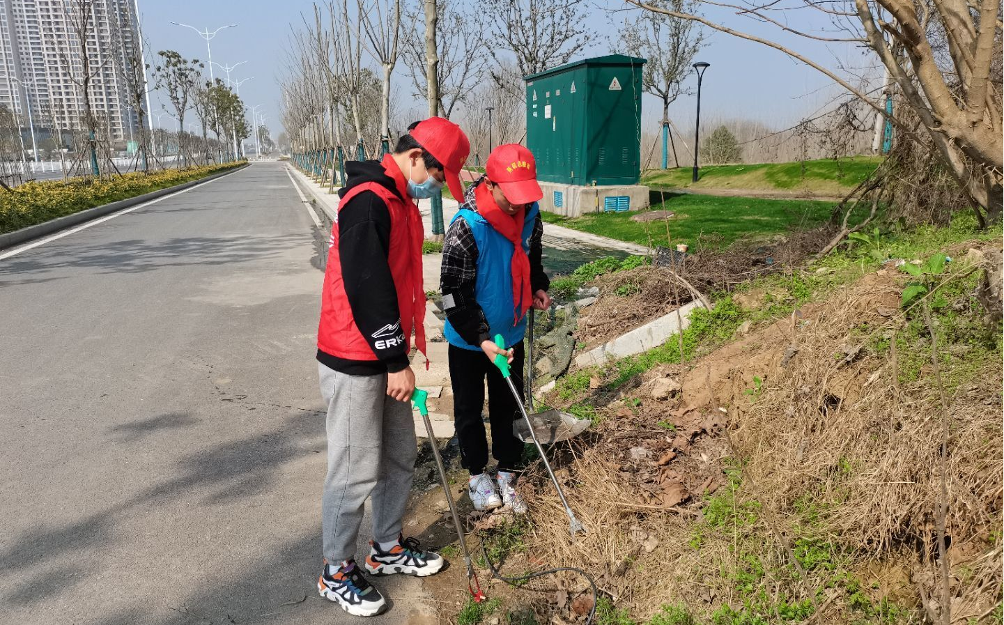 3月2日,学校组织八年级学生志愿者开展环境保护志愿服务活动,大力宣传生态文明理念,推进生活方式绿色化,号召人们保护青山绿水,爱护一草一木。志愿者们认真打扫校园门前马路,清洁校园周边花坛、绿地,用实际行动来倡导绿色环保理念。