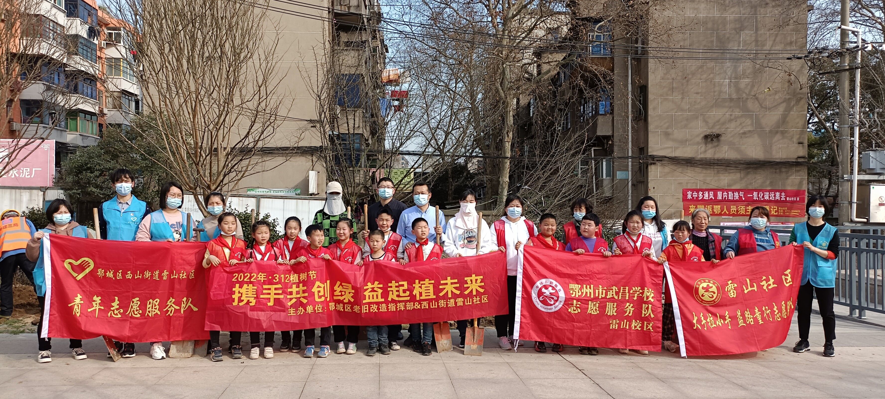 春回大地催新绿,植树造林正当时。为增强辖区居民的环保意识,传播环保理念,发扬志愿者精神,3月10日,植树节来临之际,雷山社区链接鄂城区老旧改造指挥部资源,携手西山派出所、党旗领航志愿服务队、红十字会志愿服务队、青年志愿者服务队、大手小手益路同行志愿服务队共同开展了一场“携手共创绿 益起植未来”植树活动。