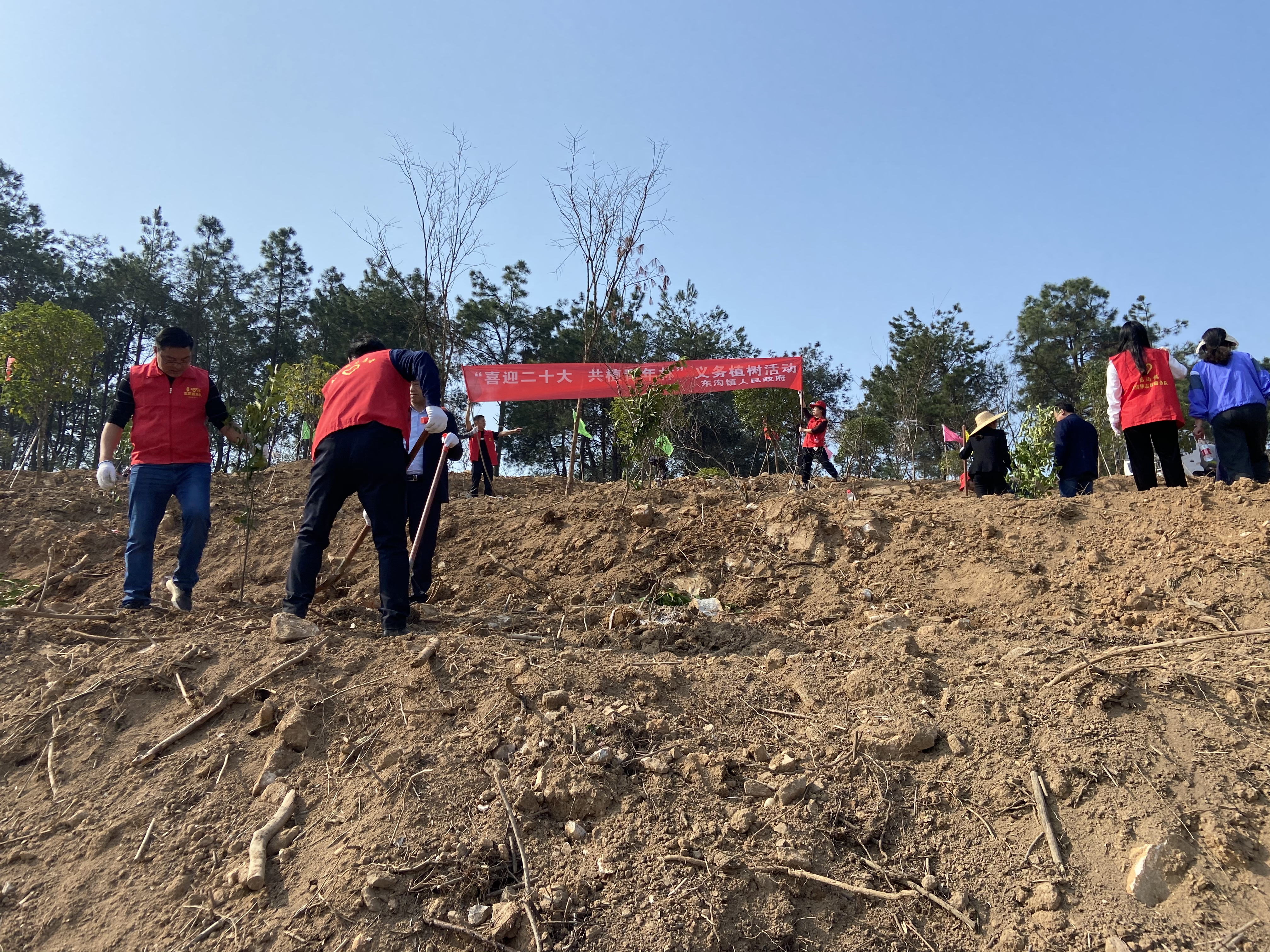 3月11日上午,东沟镇“喜迎二十大,共植青年林”义务植树活动在徐山村山下徐北坡举行。东沟镇志愿者100余人参加了植树活动。
