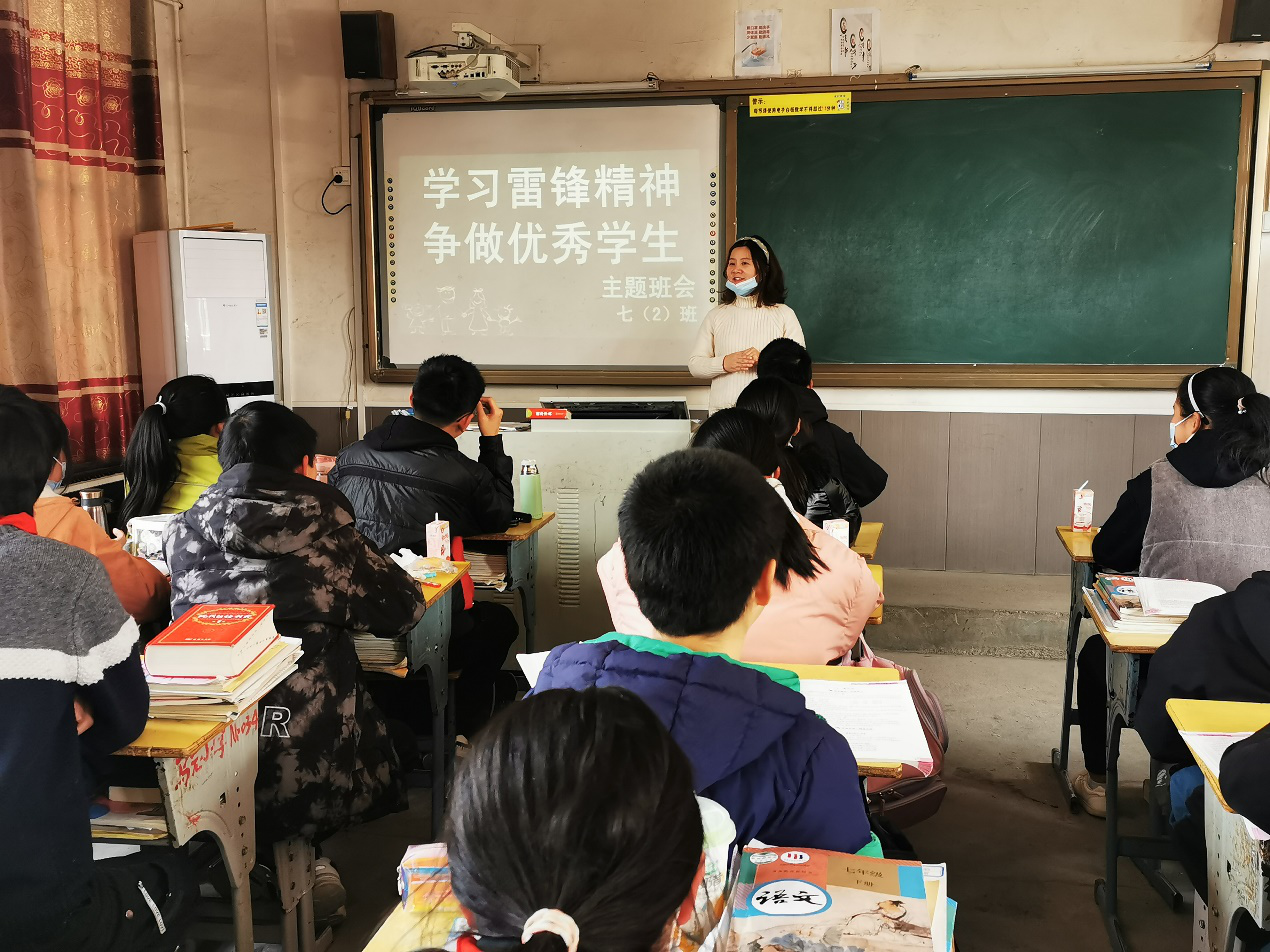 映山中学团支书邵传芳利用班会时间宣扬雷锋精神
