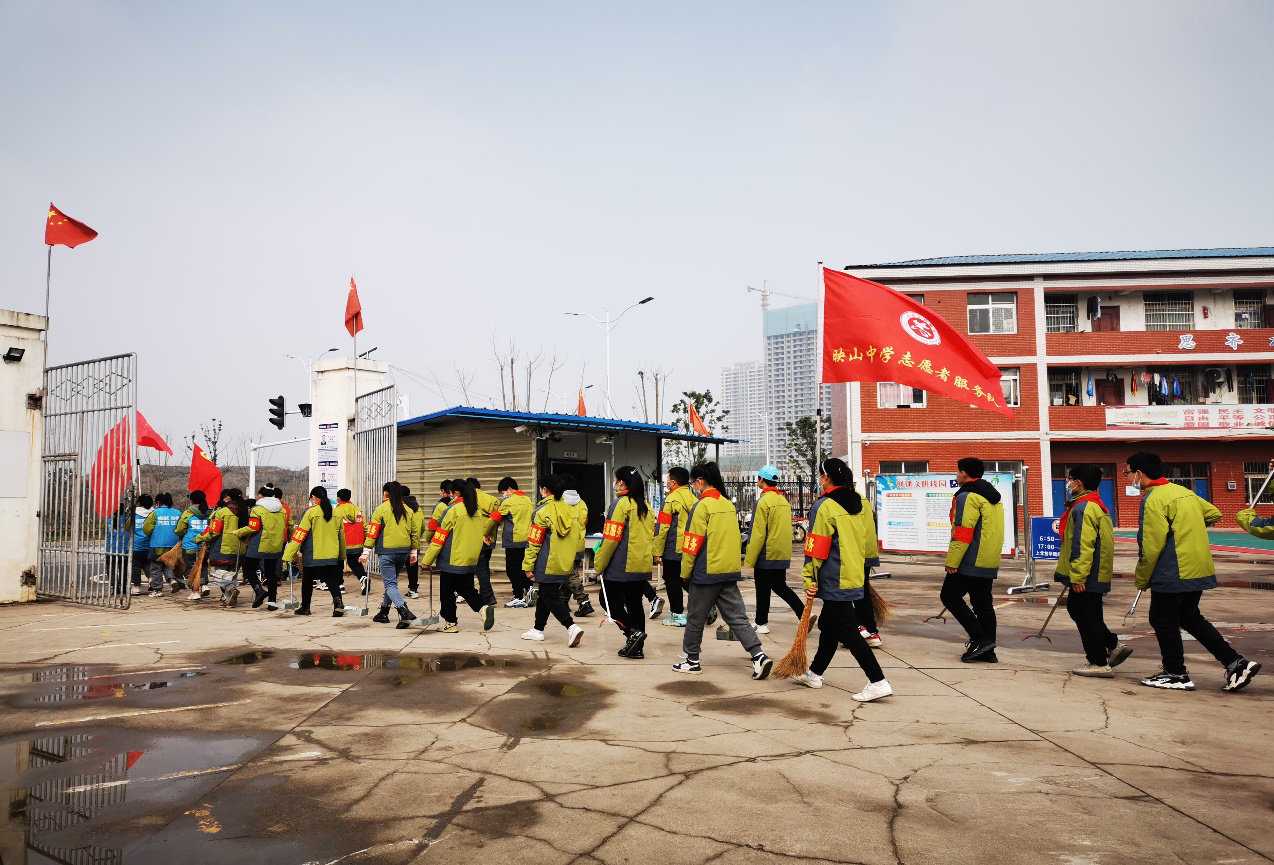 映山中学志愿服务队整队出发开展志愿服务活动
