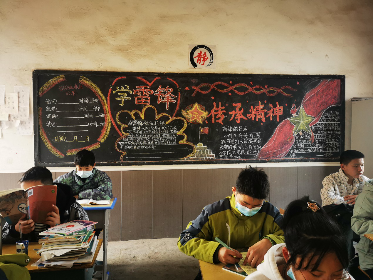 映山中学团支部以黑板报形式宣扬雷锋精神