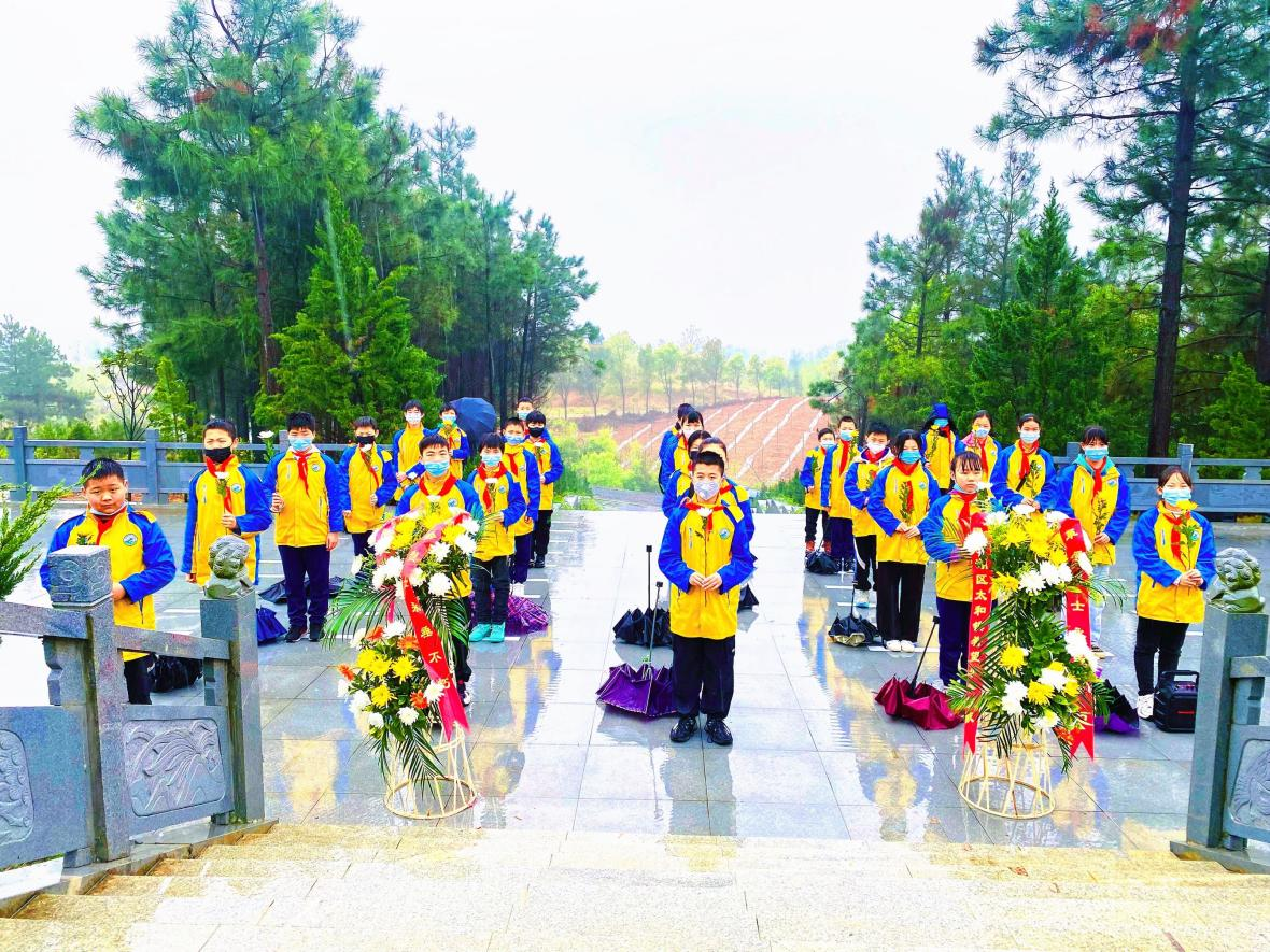 学校党支部副书记、工会主席、德育主任、大队辅导员以及中队辅导员代表希望小学向烈士敬献了花篮。学校少先队员邓宇泽代表发言,深情缅怀了先烈的丰功伟绩,并号召少先队员要继承先烈遗志,发扬光荣传统,弘扬民族精神。全体少先队员瞻仰革命烈士纪念碑并分别敬献了菊花。最后,党支部副书记激励全体少先队员好好学习、天天向上,传承红色基因,争做时代新人。