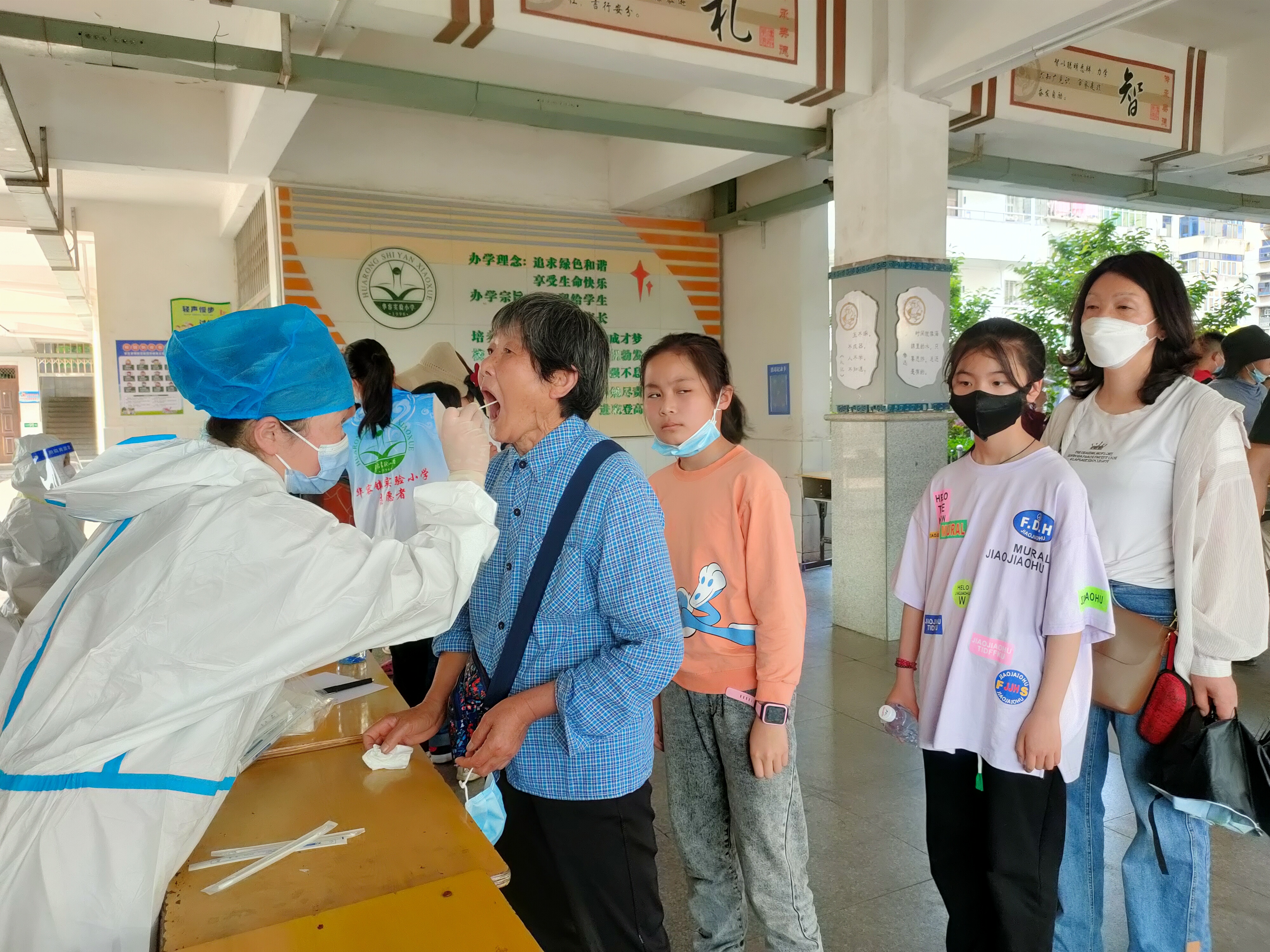 4月10日,华容镇实验小学作为华容镇区域核酸检测点之一,党员教师积极响应上级号召,以高度的责任感和使命感投身到核酸检测服务工作中,在党支部书记汤华峰同志和校长廖红梅的带领和部署下,迅速布置好了场地。党员教师服从安排,兵分三队:一队在医务人员的指导下用手机给居民进行信息采集;二队负责带领居民排队进入采样点并进行喊话宣传;三队负责维护居民秩序同时指导居民找到健康码或电子健康卡。大家各司其职,与医护人员并肩作战。晚上9点左右,党员教师协助医务人员进行核算采样近1500份,圆满完成任务。