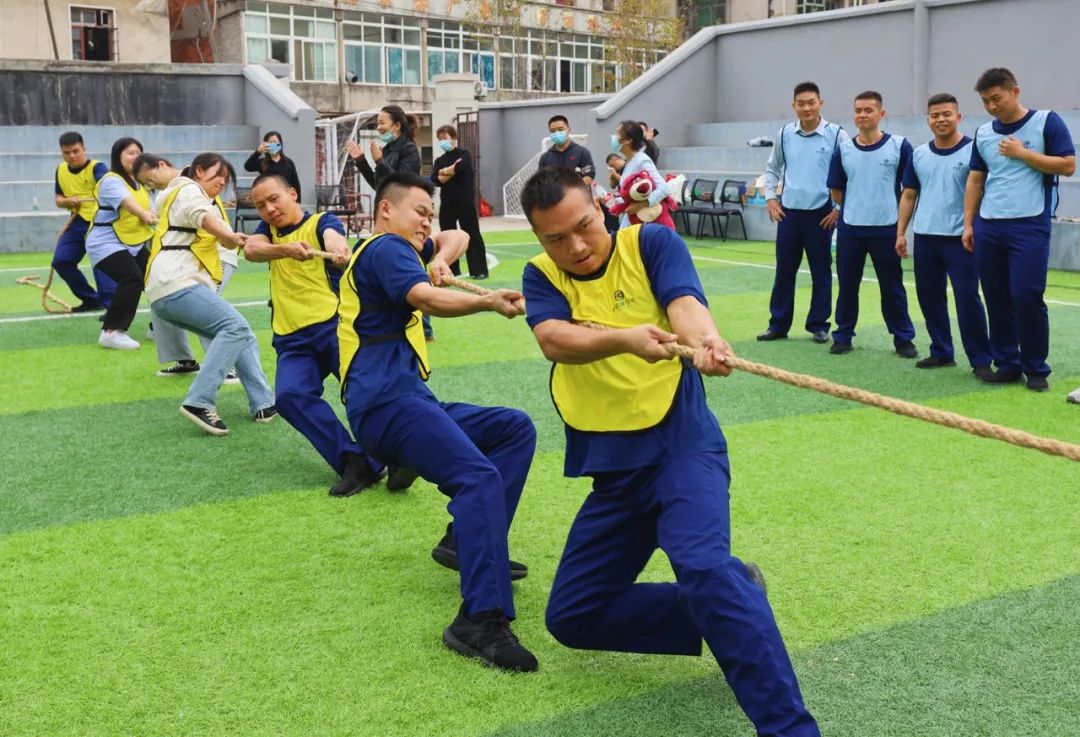 “加油!加油!”随着比赛哨声响起,一场激烈的拔河比赛随即开始。各组参赛人员齐心协力,情绪高涨,卯足了劲,涨红了脸,咬紧牙关,用尽全部力气向后方拖拉麻绳,红绳在中点处以微弱的距离左右移动,各队互不相让,拼劲十足,围观群众呐喊助威,现场氛围极其热闹。随后开展的“鱿鱼游戏”、“扎糖饼”、“穿越雷区”、“烧烤串串香”等活动和游戏环环相扣,既紧张刺激又妙趣横生,青年朋友们在活动中积极参与、相互配合,逐渐敞开心扉、互致问候,极大地减少了紧张感和疏远感,开启了一段浪漫的邂逅之旅。