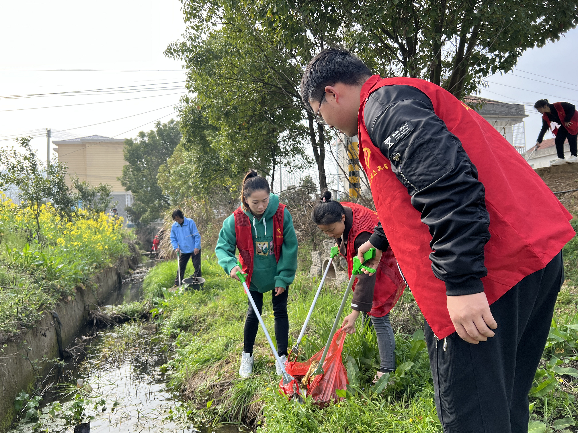 当好人居环境整治的“践行者”。青年志愿者们在村干部的带领下来到村湾内人居环境整治的重难点处,他们充分发扬“不怕苦、不怕累、不怕脏”的志愿精神,对街头巷尾、房前屋后、田边河道的烟头、生活垃圾、白色垃圾等进行了全面清理。