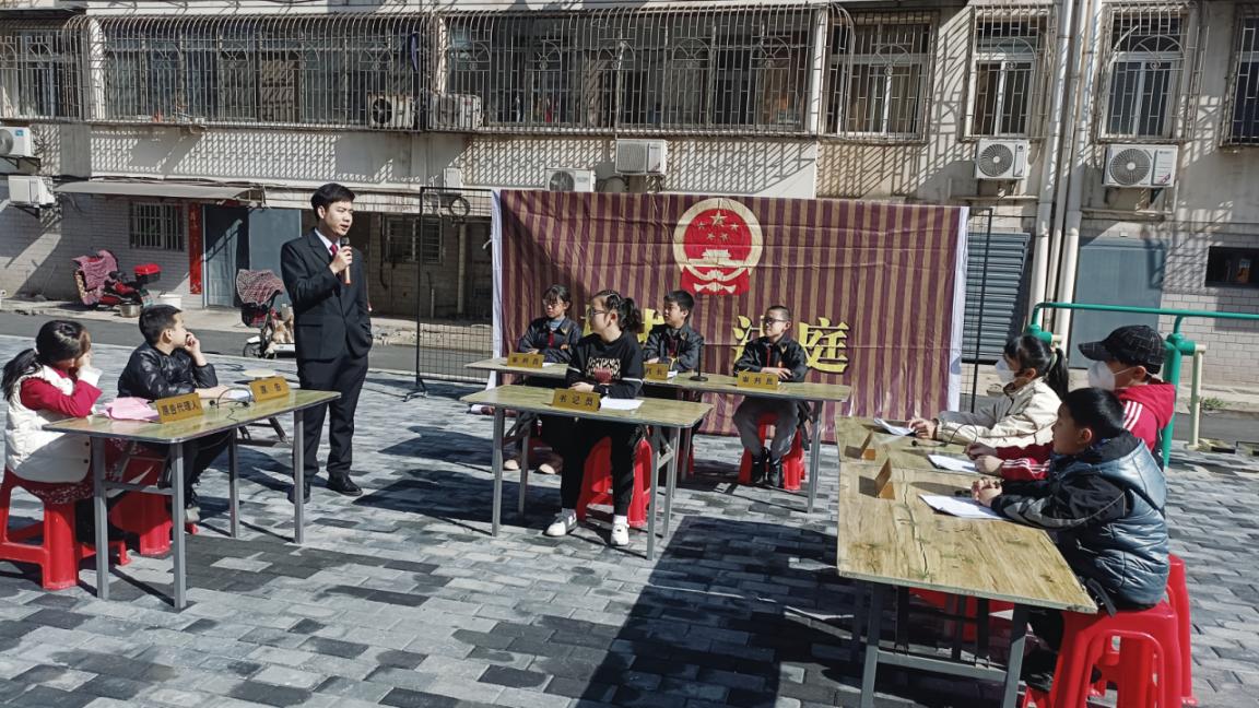 为深入贯彻落实未成年人相关法律法规,增强中学生法治意识和自护能力,切实加强青少年法治教育,引导青少年树立尊法、学法、守法、用法意识。3月26日,团市委、鄂城区法院、火车站社区、市青年志愿者协会联合市青少年事务服务中心走进火车站小区,以模拟法庭的形式开展法治教育主题实践活动,为学生们送去一堂生动的法治课。?
