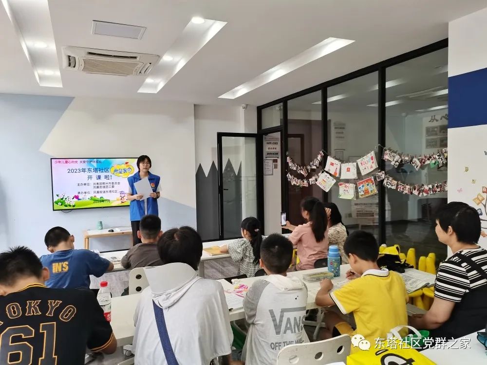 助力共同缔造,唱响快乐暑假。为解决暑假期间家中儿童无人看管问题,丰富未成年人的暑期生活,促进少年儿童健康成长,让孩子们度过一个安全、快乐、有意义的假期,7月11日上午,凤凰街道东塔社区迎来了2023 年“希望家园”暑期班开班第一课。