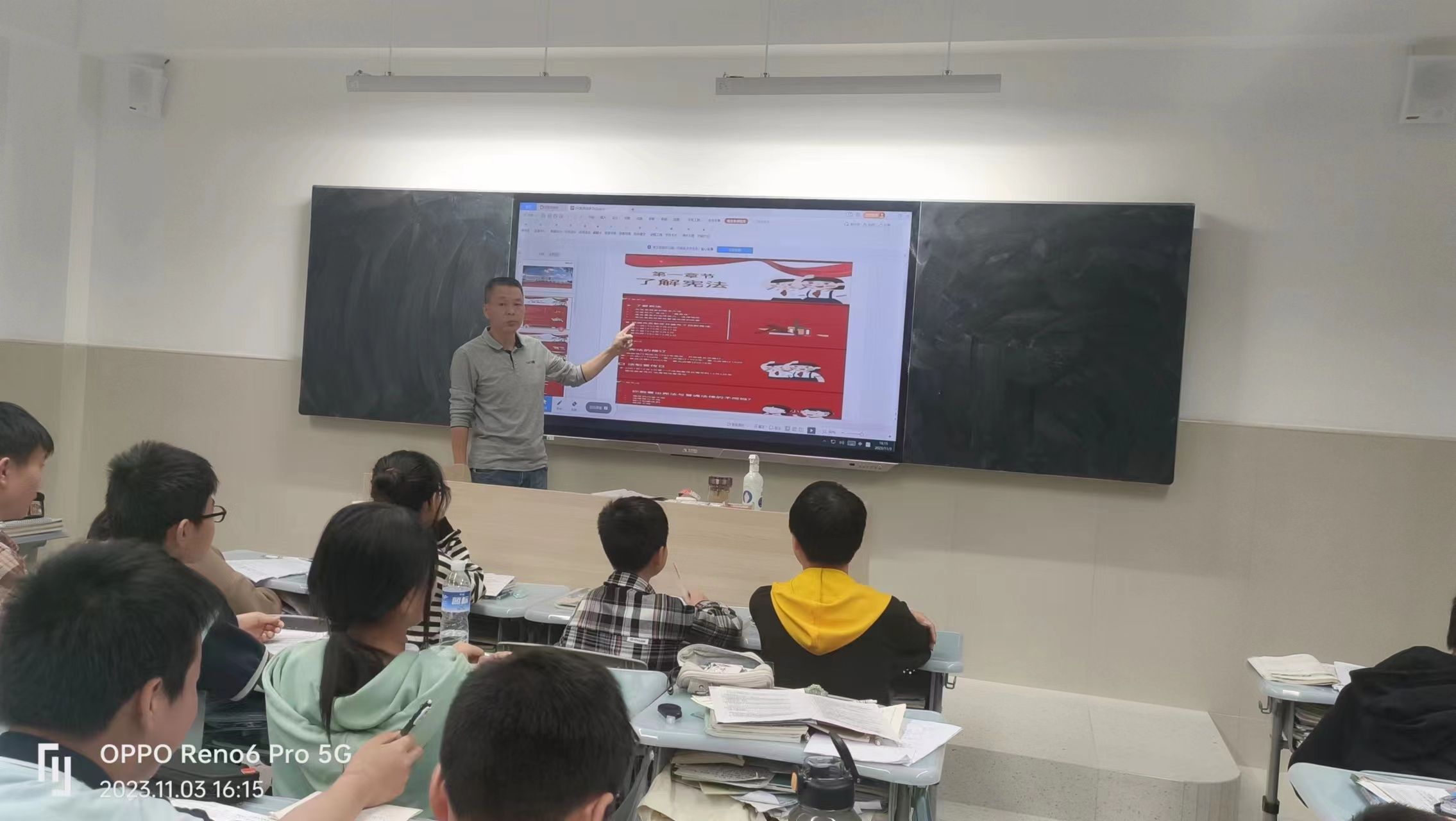 各班结合校情和学生的生活实际,开展形式丰富多彩的教育活动。有播放生活中青少年违法案例让学生参与讨论的,有从良好行为习惯的养成谈如何做守法好公民的,有结合自身实际交流对宪法条文认识理解的,更有请班内“法治小专家”向同学们作法律条文解读的。为增强教育效果,各班还利用多媒体设备制作了相关ppt等电子课件。新颖灵活的教育形式,贴近学生实际的教育内容,让同学们学在其中、乐在其中!