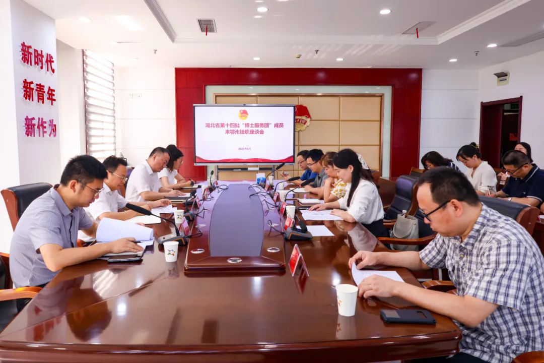 2025年8月6日上午,湖北省第十四批“博士服务团”成员赴鄂州挂职座谈会在团市委机关会议室成功举行。会议旨在为“博士服务团”成员与挂职单位搭建沟通交流平台,推动人才与企业的深度合作。市委组织部、团市委有关负责同志,派出单位代表、挂职单位负责人及“博士服务团”成员参加会议。