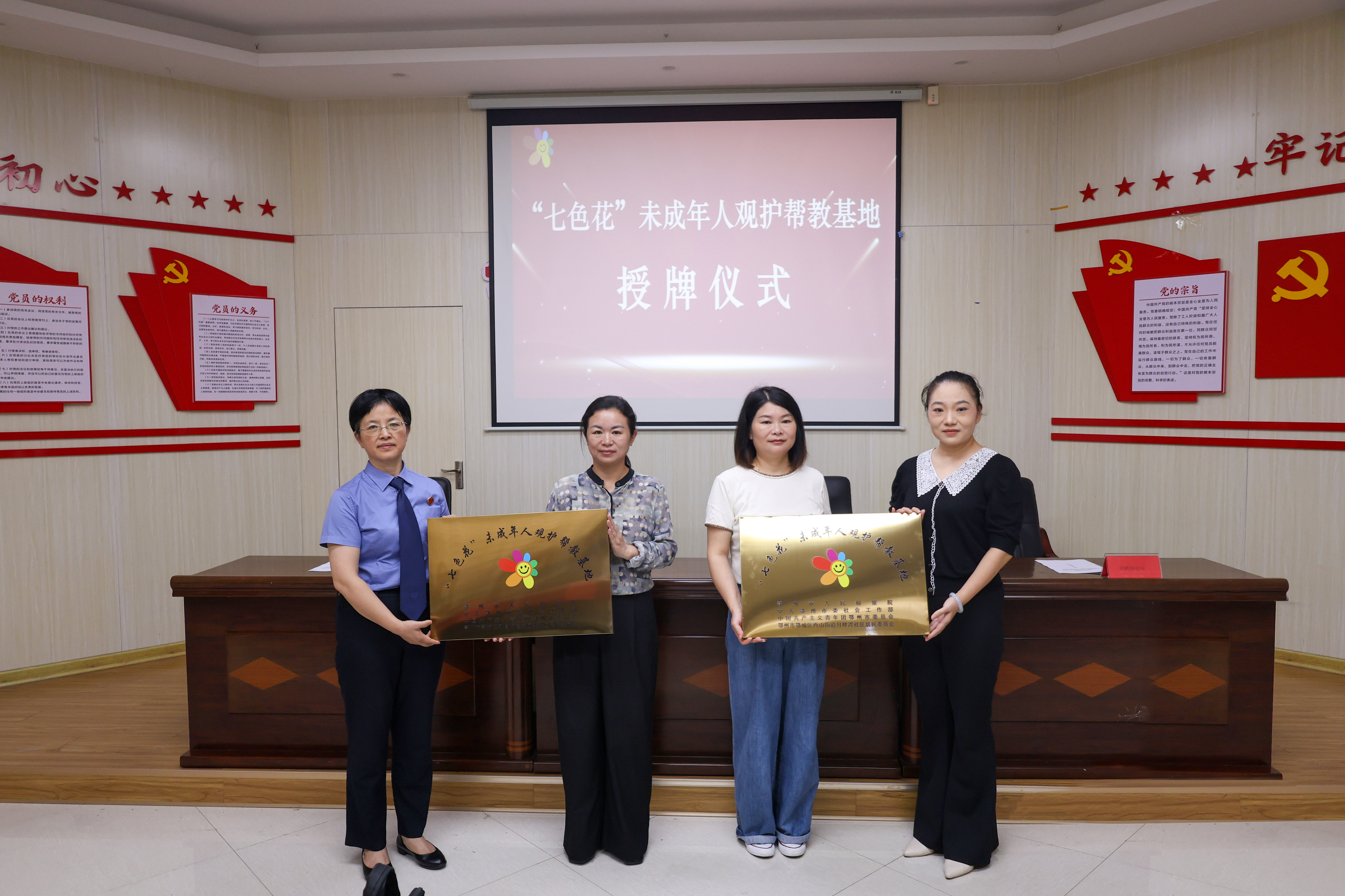 授牌环节庄重热烈。市委社会工作部副部长吴丹与市检察院党组成员、副检察长徐裕芬共同为月畔湾社区、菜园头社区“七色花”未成年人观护帮教基地揭牌,两块牌匾承载着多方协作的期待。