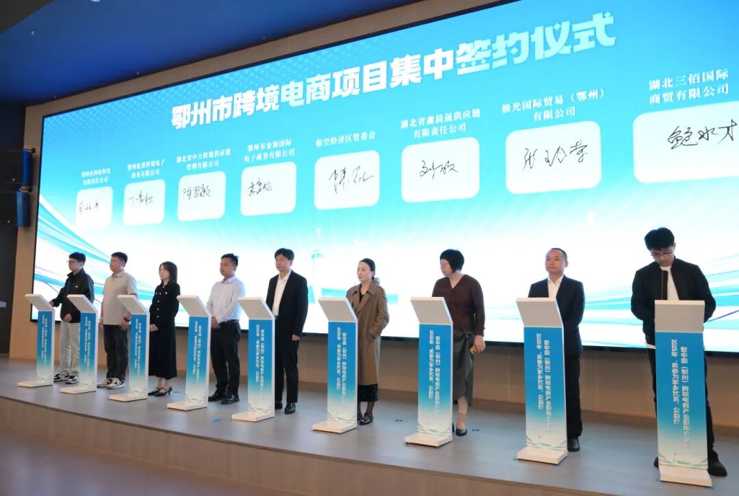 活动现场,武汉长江云纺供应链有限公司总经理王奇、武汉乐淘互娱董事长陈建武、抖音垂钓领域头部自媒体创作者李念恩结合实战经验作了交流分享。新入驻跨境电商产业园企业集中举行签约仪式,部分参会代表获颁“鄂州跨境电商共创青春伙伴”证书。