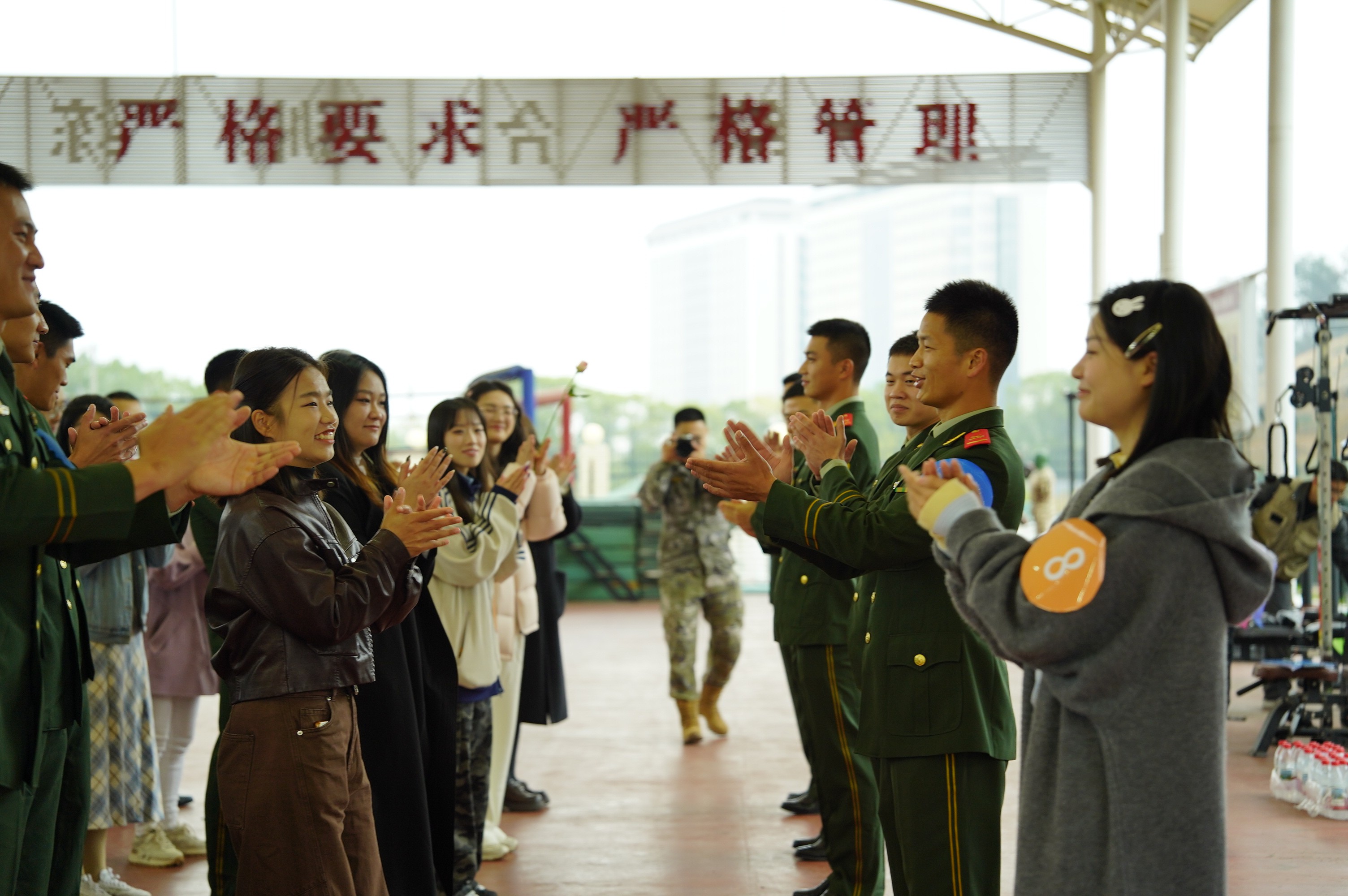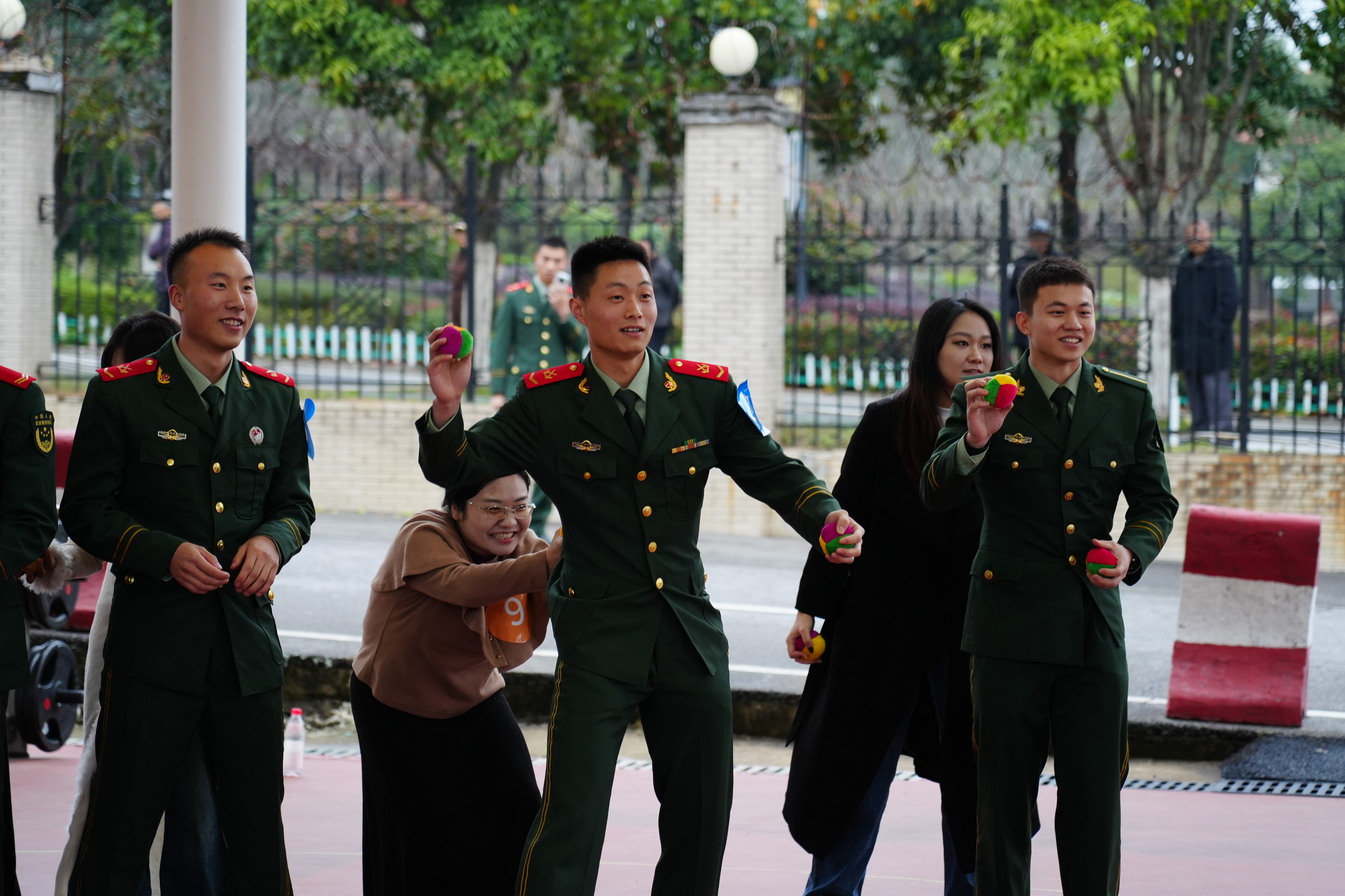 为了让军地青年快速破冰、加深情谊,一系列趣味盎然的互动游戏,成为整场活动的“欢乐引擎”。从热身“趣味指令”的轻松打趣,到“找朋友”游戏中手拉手的瞬间熟络,再到“红线使命”里的信任协作、“老鹰捉小鸡”的童真欢腾、“爱情城堡”搭建中的创意碰撞,每一个环节都充满了欢声笑语。官兵们的沉稳可靠与女青年们的聪慧灵动相得益彰,陌生感在互动中消散,默契在配合中滋生,训练场上满是青春交融的温暖画面。
