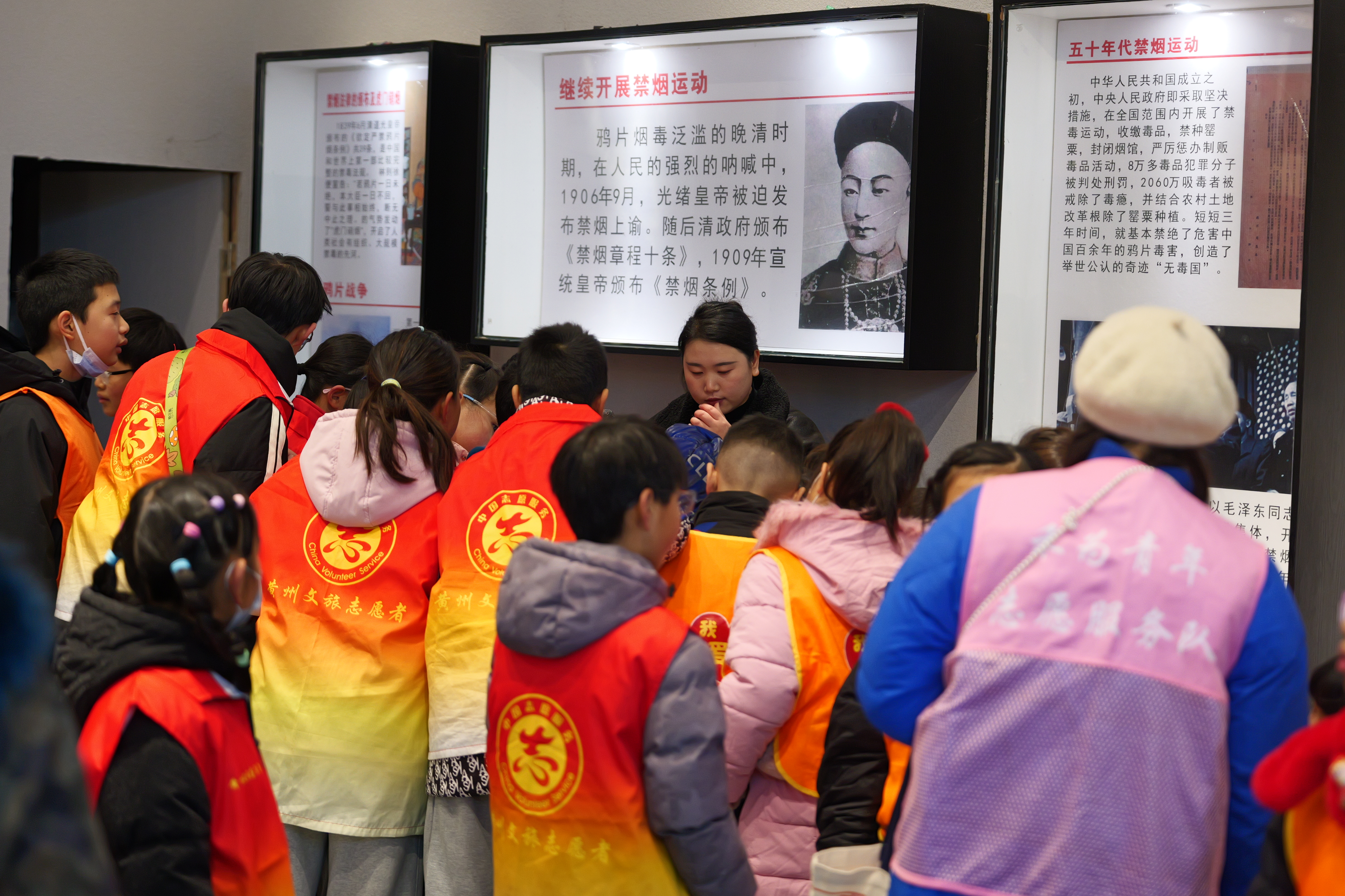 活动伊始,同学们率先抵达鄂城区禁毒教育基地,开启了干货满满的禁毒学习之旅。在基地讲解员的专业引导下,一场沉浸式禁毒科普课堂正式拉开帷幕。