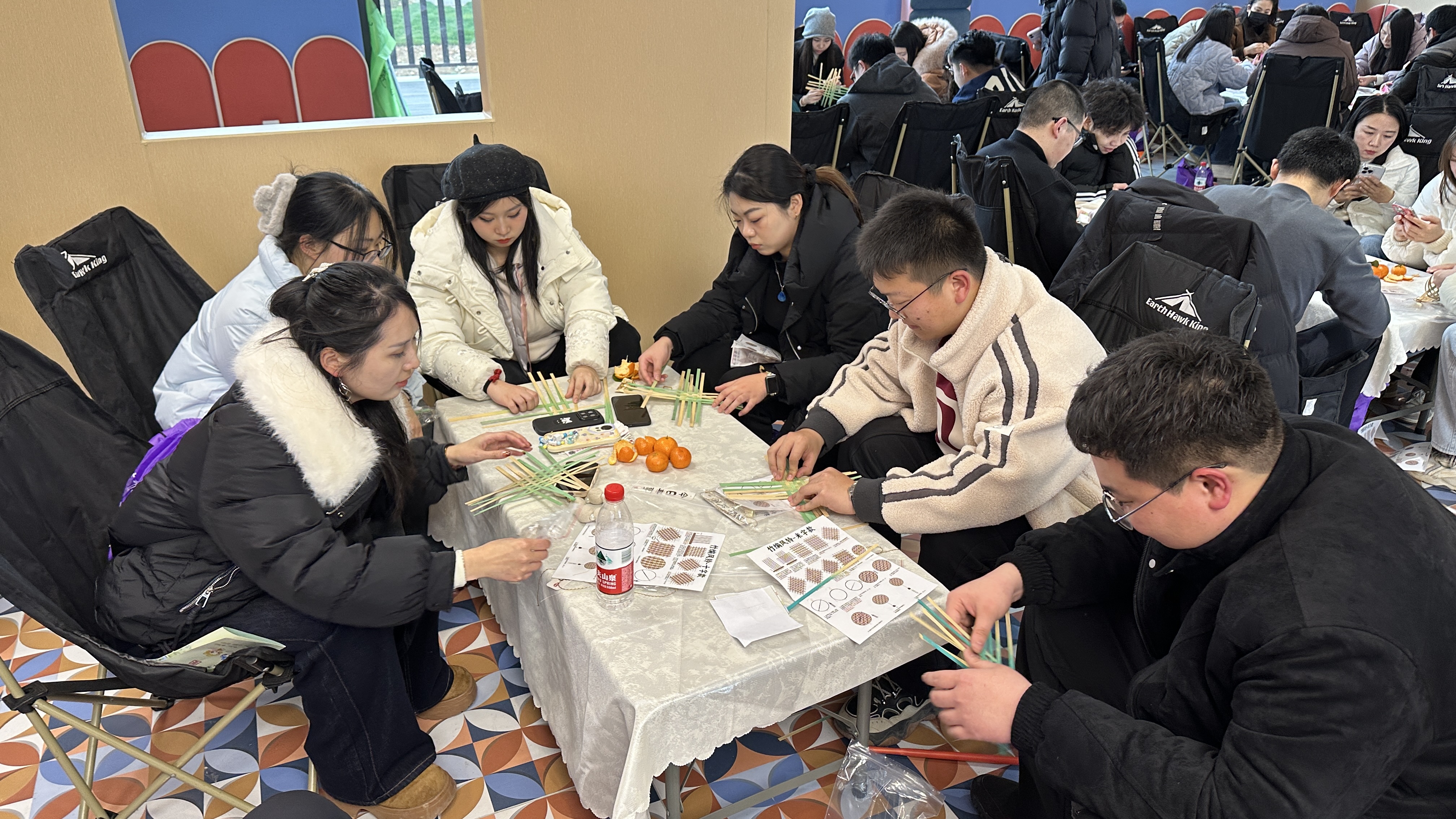 寻宝闯关结束后,大家移步室内开展非遗竹编风铃diy,在动手创作的温馨氛围中进一步交流互动,分享活动中的趣味瞬间。青年朋友们领取惊喜奖品,为这场交友之旅增添满满仪式感。最后,全体青年在听澜驿前合影留念,在欢声笑语中为本次活动画上圆满句号。