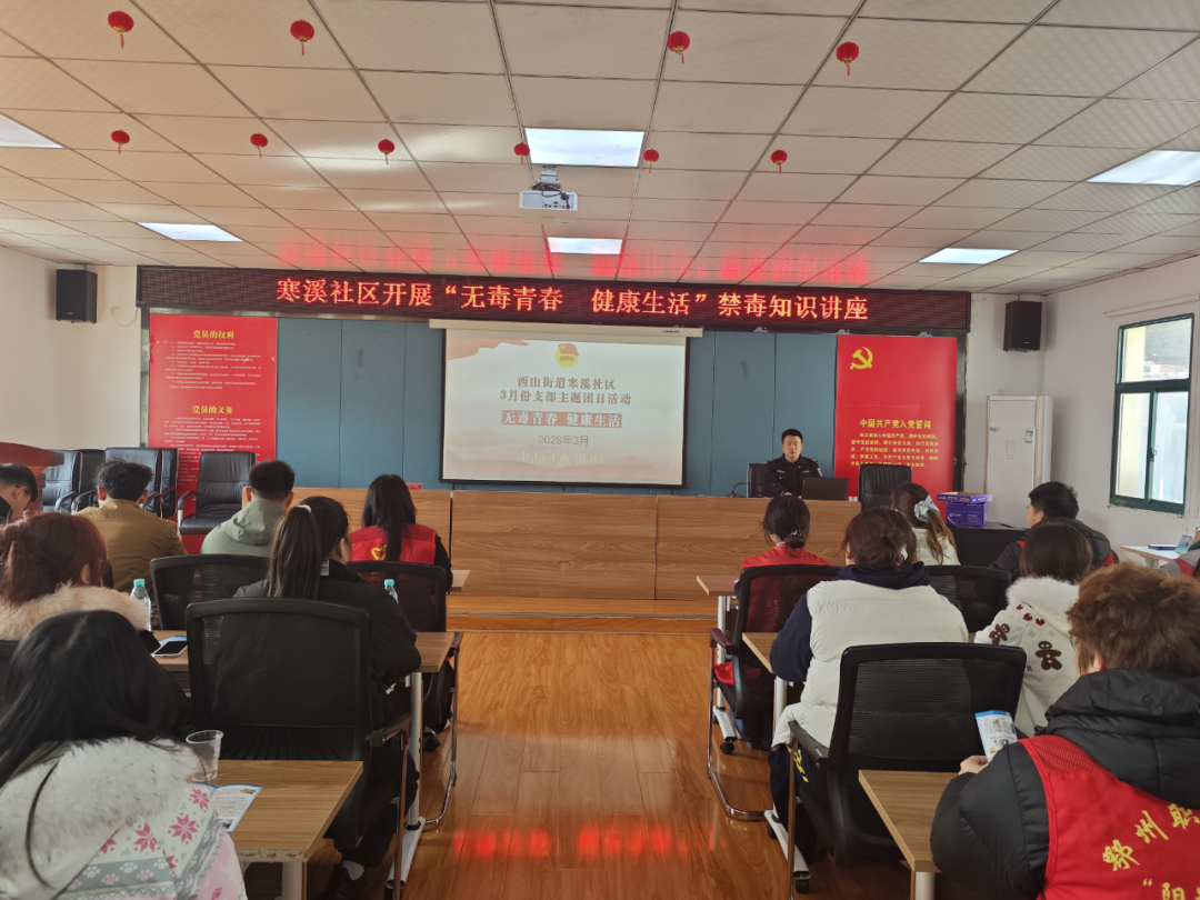 为切实加强青年学生毒品预防教育,引导广大团员青年树立防毒拒毒意识、守护健康成长,2026年3月10日,寒溪社区联合鄂州职业大学建筑工程学院学生支部委员会师生,西山派出所开展“无毒青春 健康生活”支部主题团日活动,为学生带来一堂直观生动的禁毒安全教育课。