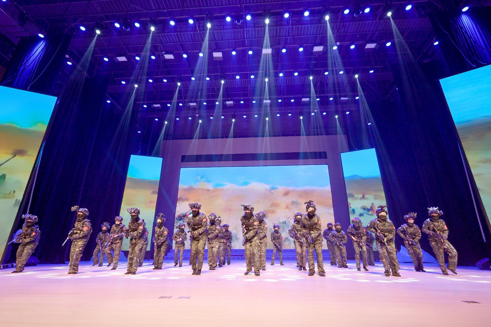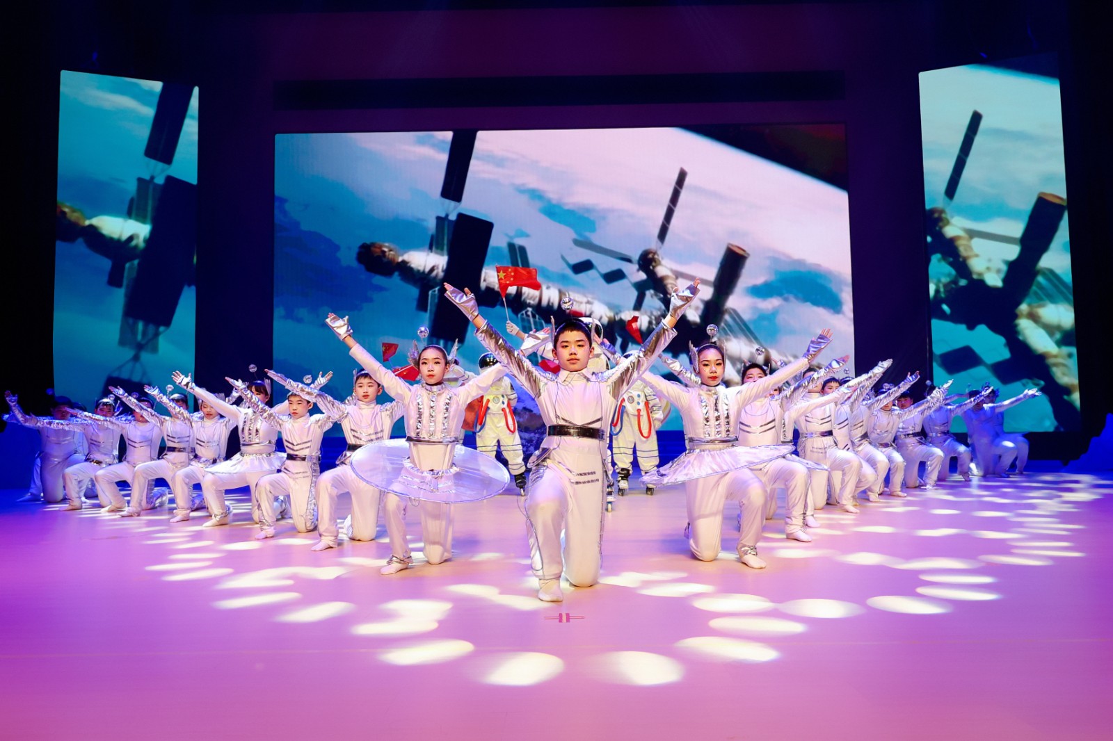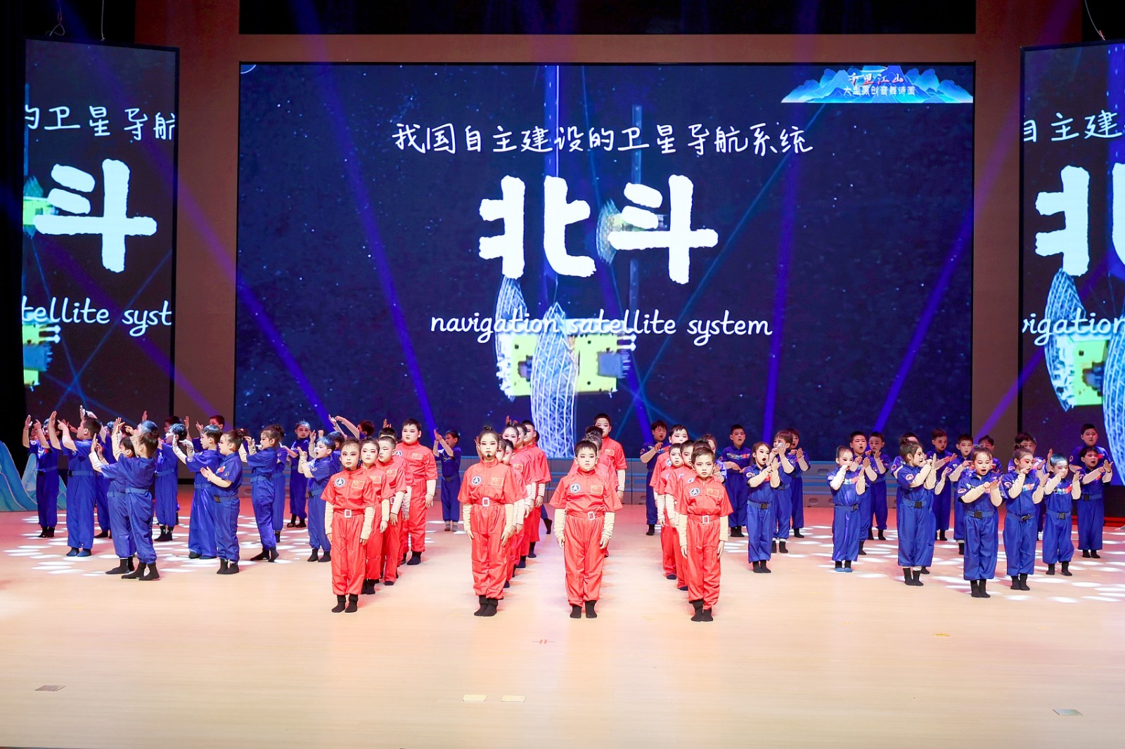 整场剧目以北宋传世名画《千里江山图》为艺术蓝本,以“入画、启卷、诵卷、抚卷、阅卷、呈卷”六大篇章为脉络,讲述该校学生穿越千年与北宋画家王希孟相遇的文明之旅。教师舞蹈《只此青绿》优雅开篇,《千年呼唤》《水墨江山》《风华绝代》展现中华优秀传统文化底蕴,《丰收田野》《建设之歌》彰显时代精神,《浪漫航天》《士兵突击》《科技之光》传递家国情怀与创新追求,《绿水青山》《大写中国》《共筑中国梦》《人民就是江山》抒发孩子们爱国赤子之心。