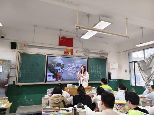 随后团干部带领学生普及我国禁毒工作现状:近年来全国毒品案件数量持续大幅下降,治理成效显著;但新型毒品隐蔽性增强、低龄化风险突出,禁毒斗争仍需常抓不懈。我国坚持依法严惩、源头治理、全民参与,持续推进“清源断流”行动,为青少年健康成长筑牢安全屏障。